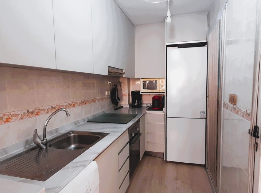 Only to 450 meters from the beach, close to all kinds of commercial services and green areas, this charming 3-bedroom apartment with built-in wardrobes is located on the first floor. It features 82 m2, a full en-suite bathroom and a shower room, a spacious living room with a glassed-in terrace, a spacious kitchen, a utility room, and a patio. The apartment has been recently renovated and is in excellent condition and is being sold furnished. This building boasts high-quality construction and easy accessibility. Guardamar del Segura, Alicante, Costa Blanca.