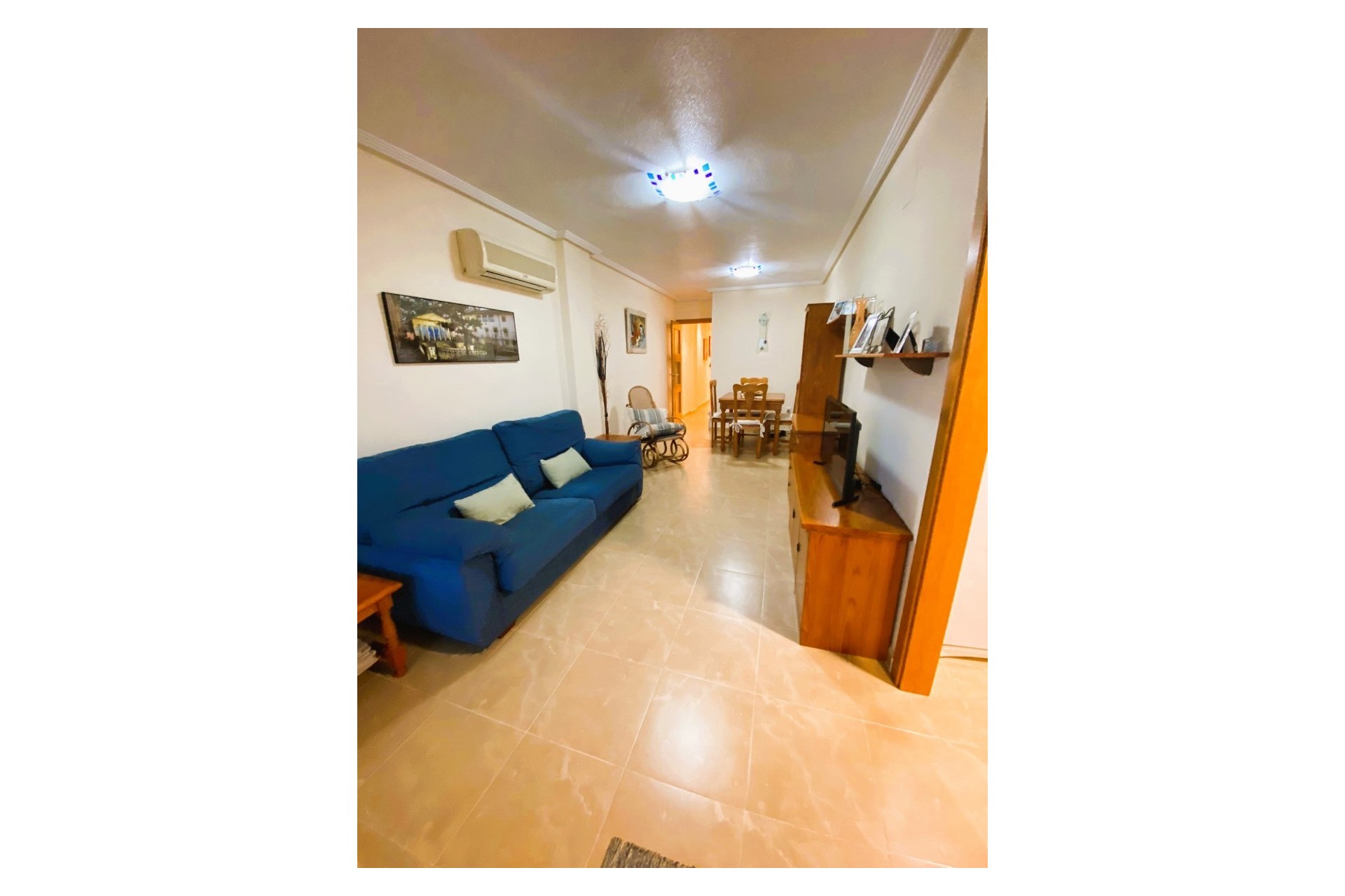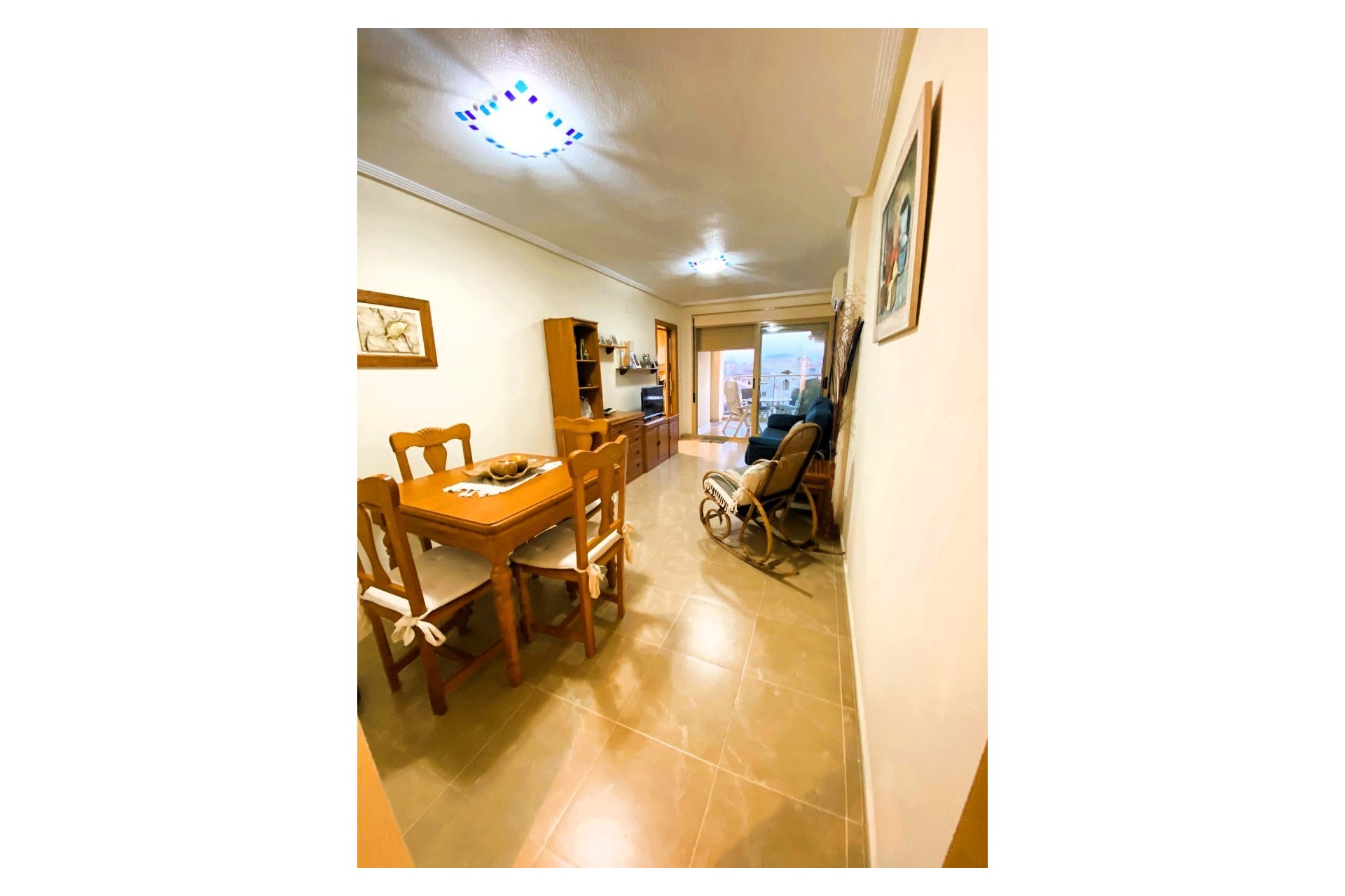 GrupoEncasa vous propose cet lumineux et charmant appartement avec 2 chambres et 2 salles de bains, avec une grande terrasse exposée Sud et unes belles vues sur la mer. Situé au troisième étage dans un quartier résidentiel calme, près de l'Avenida Cervantes, à seulement 150 m de la plage et de toutes sortes de services. Il dispose de 82 m2 construits, deux chambres doubles avec placards intégrés, 2 salles de bains avec douche à l'italienne, d'un grand séjour et d'une cuisine séparée ; tous deux avec porte d'accès à sa grande terrasse exposée Sud avec vues sur la mer. L´appartement est en excellent état, est vendue meublée de qualité, climatisé et prête à emménager. Il dispose également d'une espace de stationnement inclus dans le prix. Idéal pour vivre toute l'année et pour les vacances. Guardamar del Segura, Alicante, Costa Blanca.