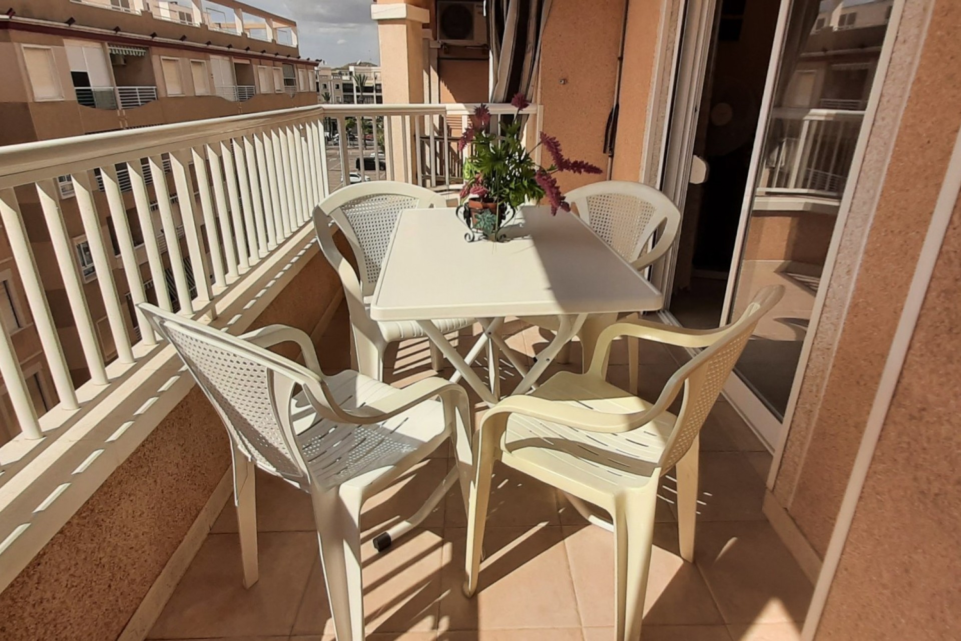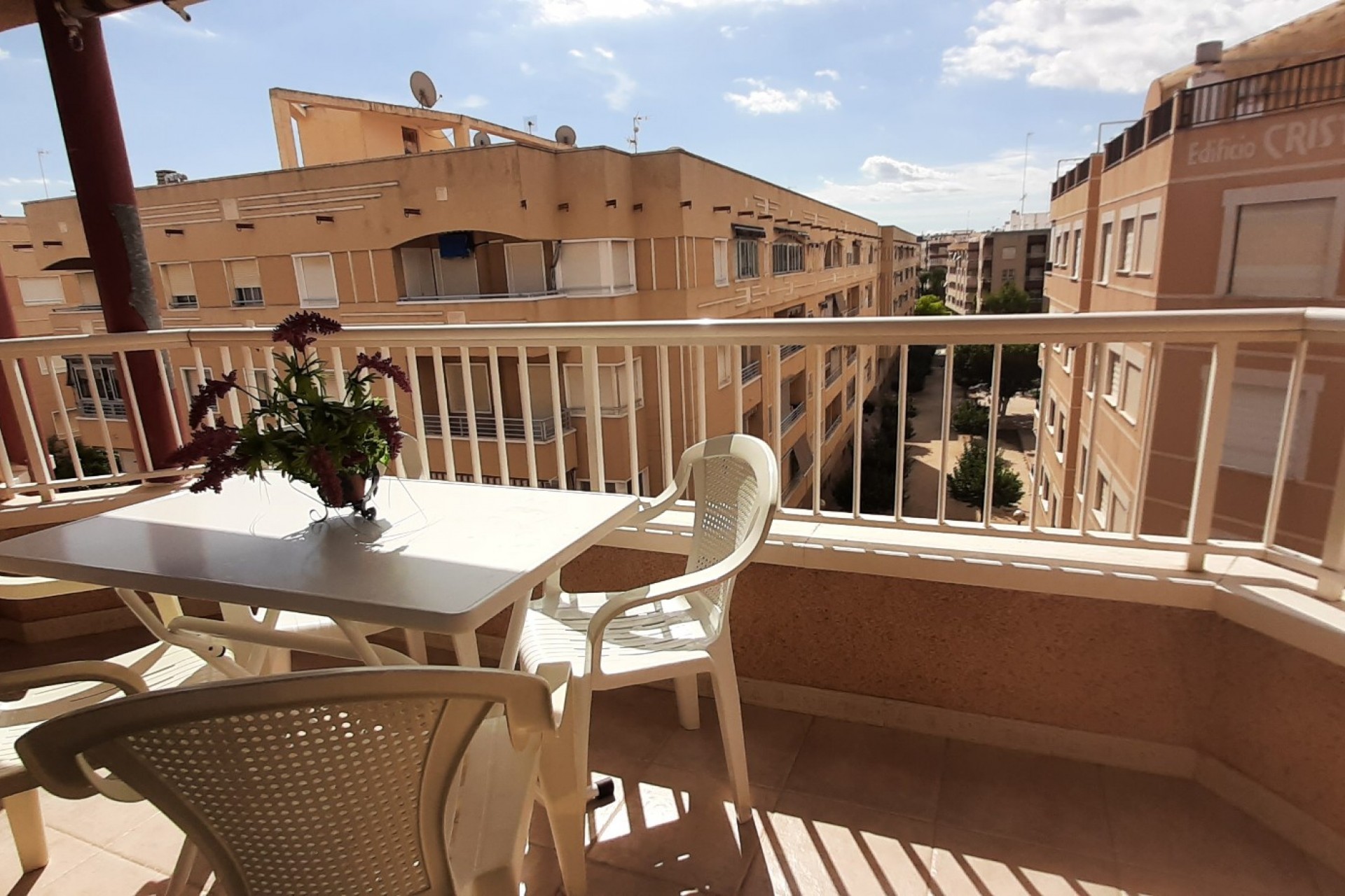 GrupoEncasa propose ce lumineux et spacieux appartement de 1 chambre, situé au 4e étage, avec une grande terrasse exposée au Sud offrant une vue latérale sur la mer et une vue frontale sur la place arborée. D'une surface de 57,95 m² et habitable de 49,54 m2 il comprend une chambre spacieuse avec armoire encastrée en aluminium et miroir, une salle de bain complète avec fenêtre, un grand séjour, une cuisine ouverte, un grand hall d'entrée polyvalent, un petit placard de rangement et un débarras de 3 m² sur le toit-terrasse de l'immeuble. Il est vendu entièrement meublé et en très bon état. Situé à côté du Parque Sur, à 400 mètres de la plage, dans un quartier résidentiel calme, à proximité de toutes sortes de services et d'espaces verts, idéal pour vivre toute l'année et pour les vacances d'été. Guardamar del Segura, Alicante, Costa Blanca.